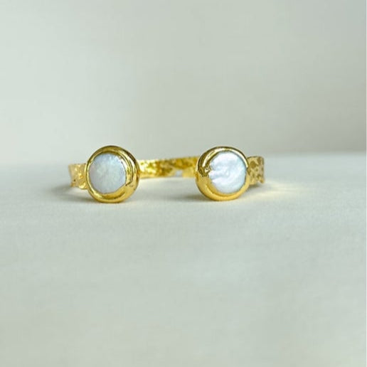 Add a touch of elegance and sophistication to any outfit with the Easton Elle - 18K Gold Misty Cuff. This stunning cuff is dipped in 18K gold and features a unique design with semi-precious stones that will make a statement. Elevate your style with this one-of-a-kind piece.
