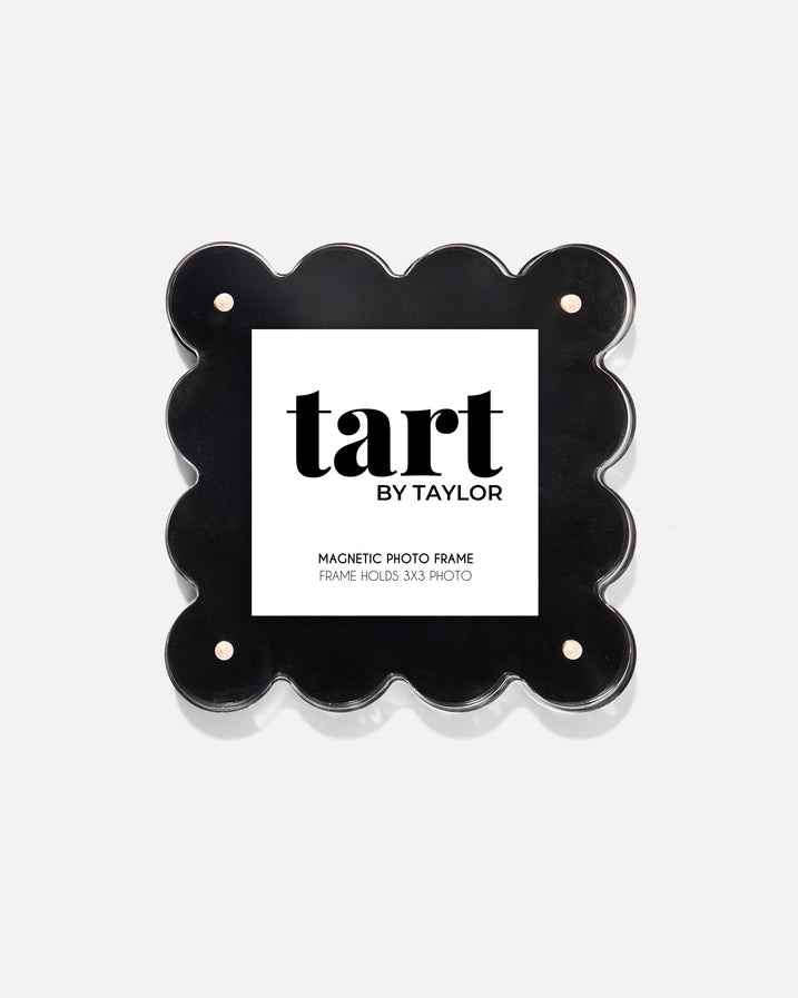 Show off your memories in a unique way with our Black Mini Acrylic Picture Frame! This acrylic scalloped frame adds a playful touch to your photos, making them stand out in any room. Great for nightstands, and desks plus they make for the perfect gift! -Suggested retail: $52-$65 -Frame Size: 5'' L x 5'' W x 1'' D -Frame holds up to a 4'' x 4'' photo - we suggest a 3'' x 3'' photo -Two acrylic panels simply attach together using four industrial strength magnets -Made of acrylic -Use a soft damp cloth to clean and keep inside