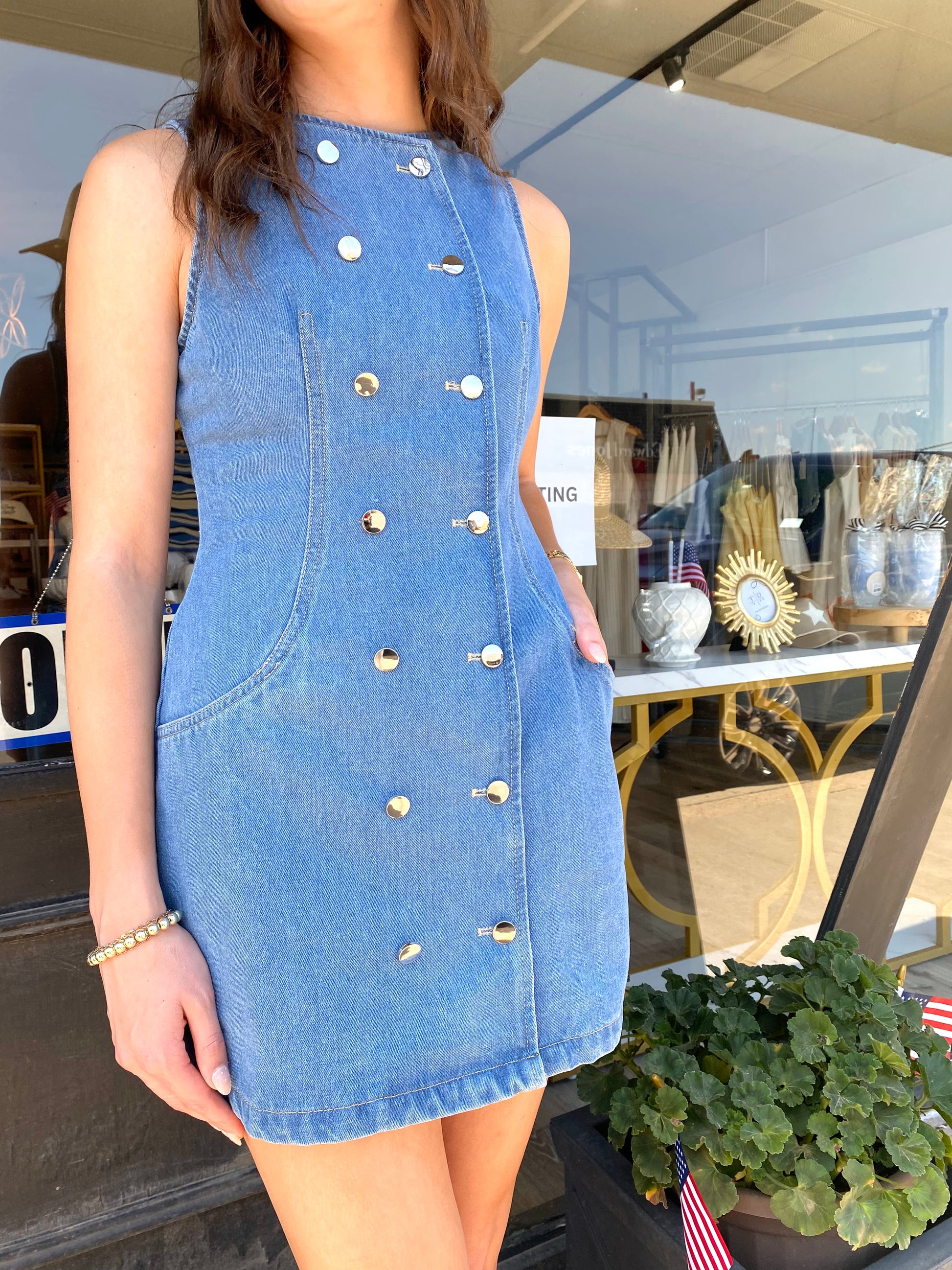 Effortlessly chic and oh-so-versatile, our sleeveless double button down mini dress will elevate your wardrobe. With a flattering mini length and relaxed fit, this dress is perfect for any occasion. The double breasted buttons add a touch of sophistication to this must-have piece. Dare to make a statement and turn heads in our dress!