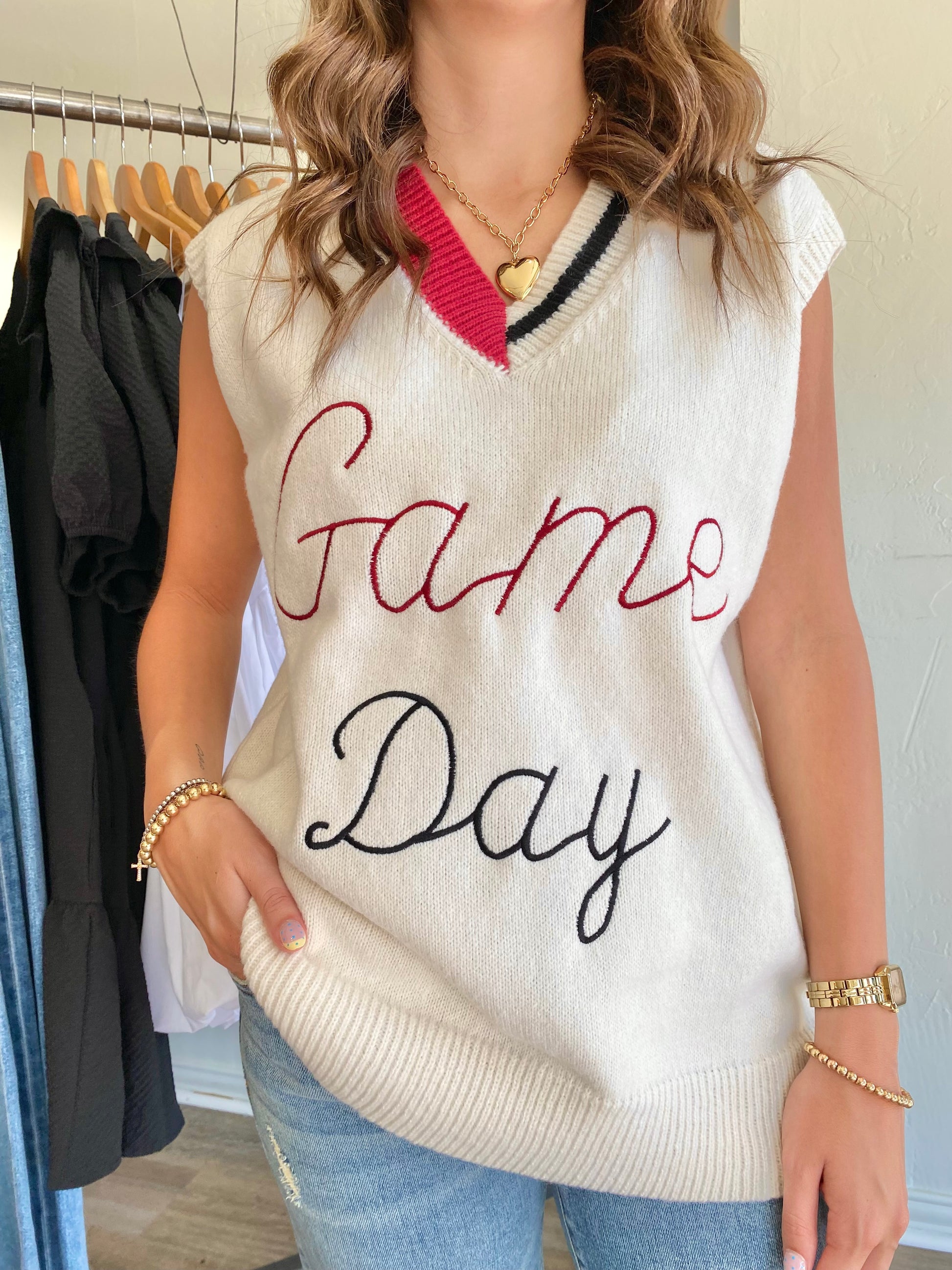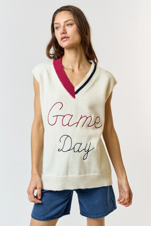 Gear up in style with this Game Day Layering Color Block Vest, featuring a relaxed fit and bold team-inspired design. Perfect for casual wear and showing your team spirit, this vest is ideal for layering during game days or everyday outings. - V neckline - Sleeveless - Loose fit