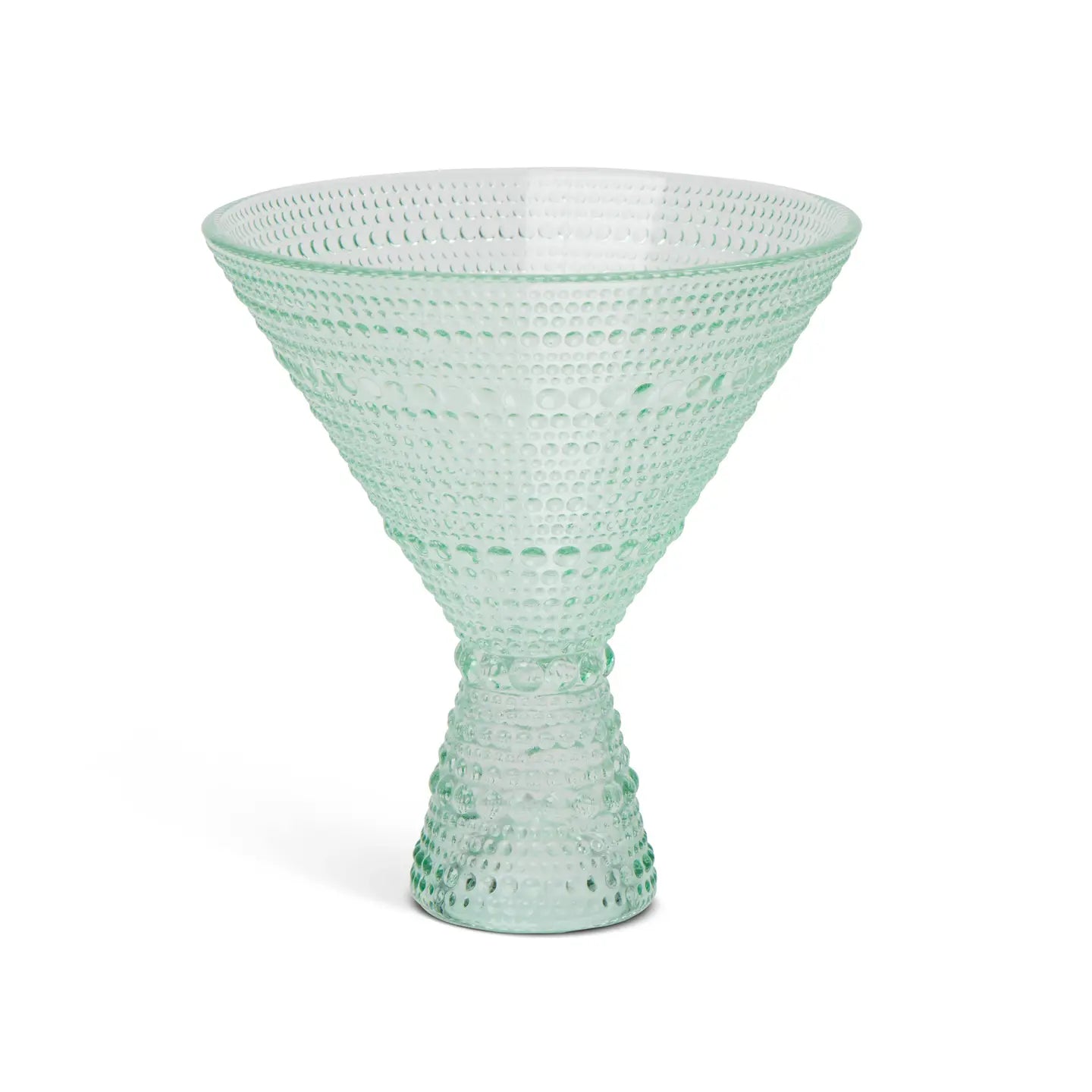 Elevate your cocktail presentation with the 10oz Dotted Martini FSF Iridescent from Core Home. This glass features a unique iridescent finish that adds a touch of elegance to any occasion. The dotted design adds a playful twist to the traditional martini glass, making it a conversation starter. Ideal for serving cocktails or liquor, it fits perfectly in any kitchen or bar setting. Core Home, known for identifying trends and unique packaging concepts, brings color and fun to your glassware collection with this stylish offering.