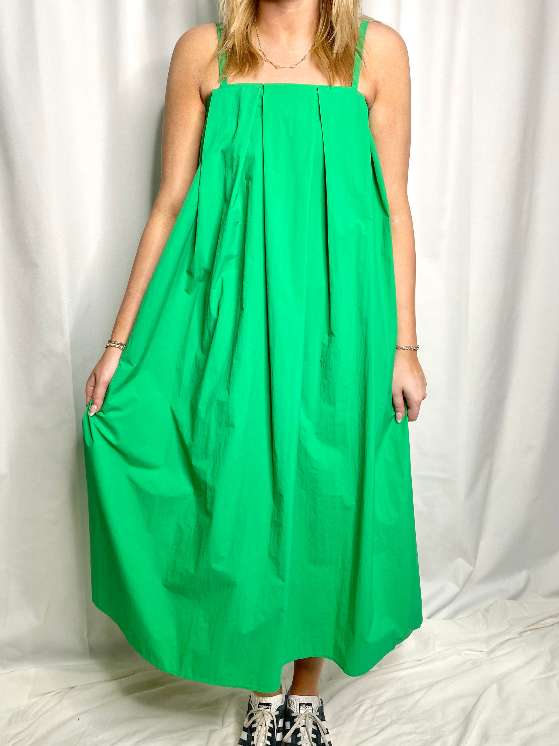 Experience the beauty and versatility of our Green Poplin Dress! From garden parties to beach vacations, this maxi dress will keep you cool and stylish. Made from high-quality poplin fabric, it's lightweight and breathable, perfect for warm weather. The flattering cut and soft color make it a must-have for any wardrobe. Don't miss out on the effortless elegance and endless possibilities of our Green Poplin Dress.