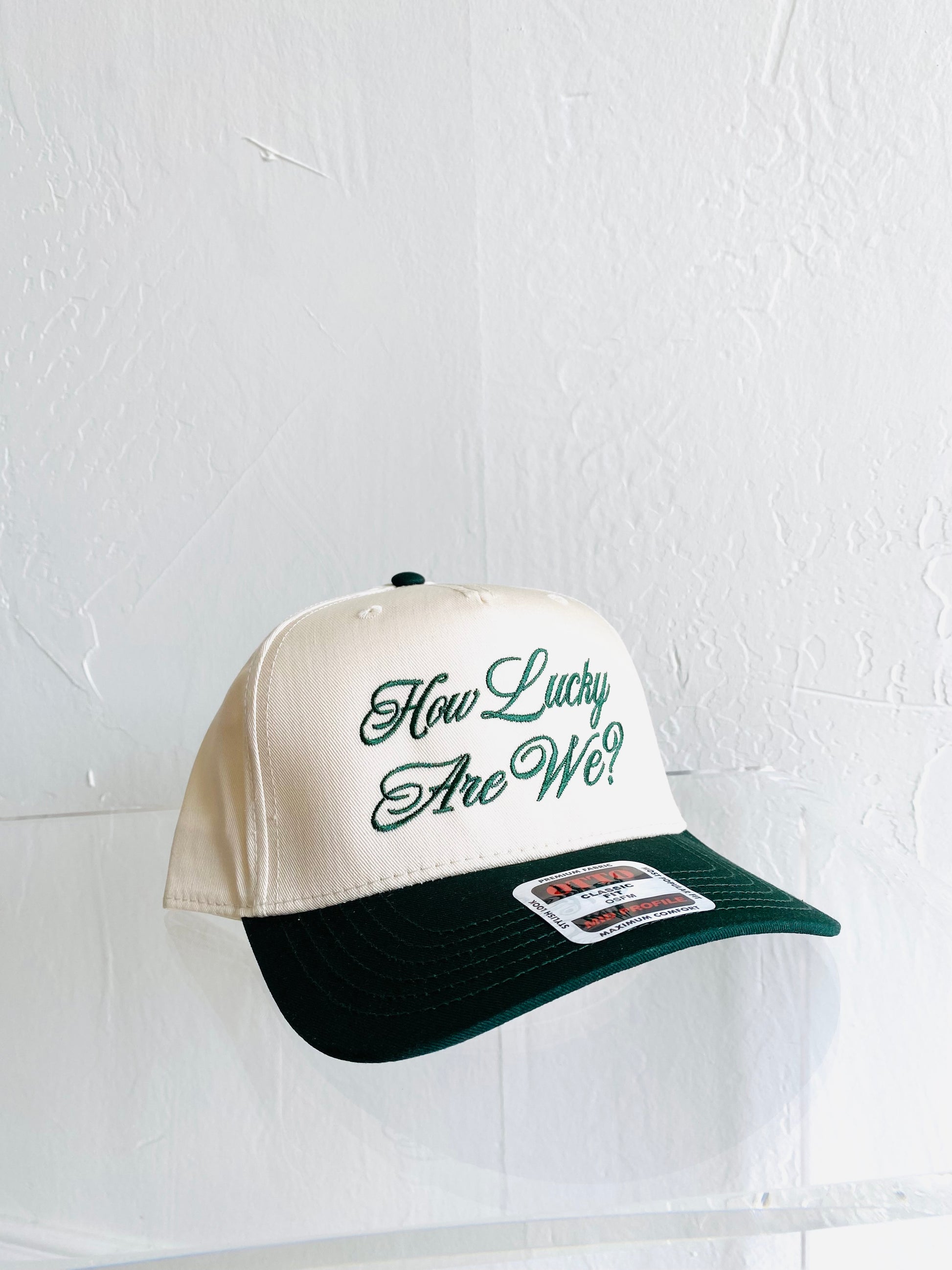 Embrace good luck wherever you go with our How Lucky Are We Hat! Featuring forest green thread and a vintage style design, this hat will make you feel confident and inspired wherever you go. Grab yours now and embrace the positive energy!