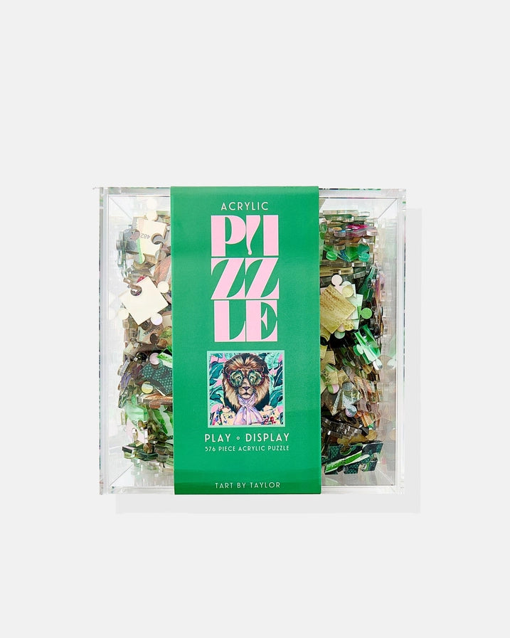 Get ready to piece together some fun with our Louis The Lion Acrylic Puzzle! This quirky puzzle features the most stylish lion you've ever seen in designer drags, adding a fun twist to traditional puzzles. With its bold design and matching acrylic display box, this puzzle is both playful and stylish. Get ready to piece together this stylish statement piece... play + display with this stunner! - 576-piece acrylic jigsaw puzzle - Comes in a coordinating acrylic display box - Completed puzzle is 23.5 x 23.5’’ inches - Box is 8 x 8 x 4 inches - Puzzle pieces are made of thick high-quality acrylic