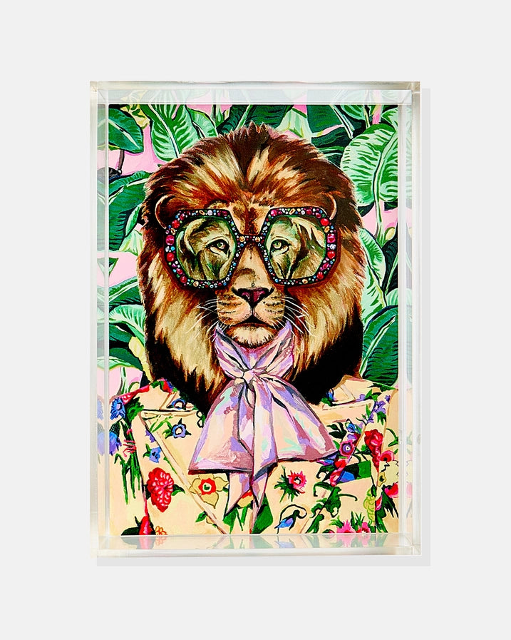 Get wild with our Louis The Lion Small Tray! This bold acrylic tray features a funky and stylish lion in sunglasses and designer garb - artwork by Heather Perry of Drunk Girl Designs. Add an exciting flair to your living space with this fun and unique tray! - Size: 6.5’’ L x 9.5’’ W x 1.5’’ H - Made of acrylic - Handmade with love in Dallas, Texas - Use a soft damp cloth to clean and keep inside.