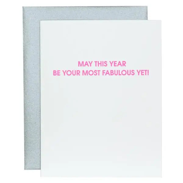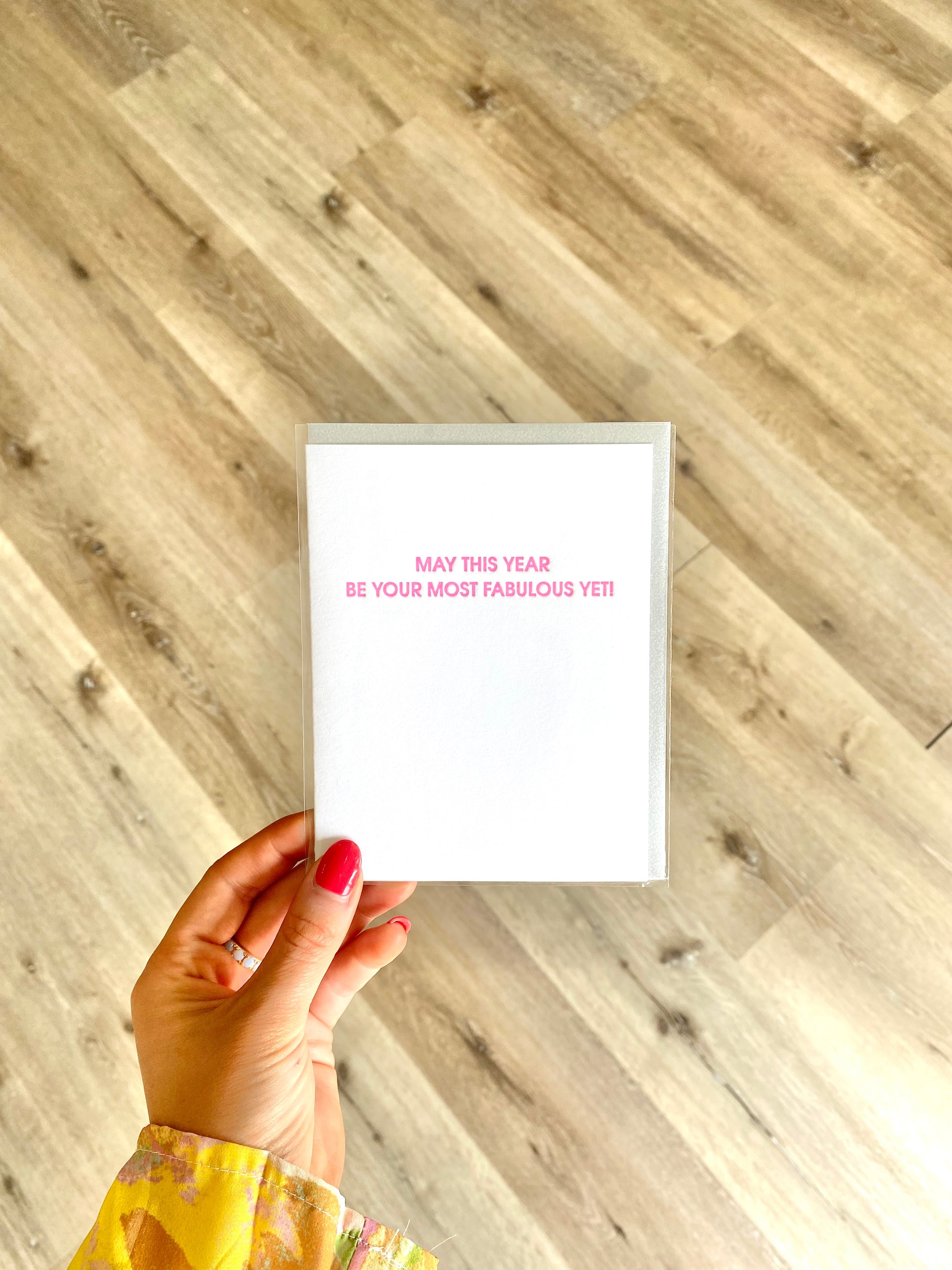 Our "Most Fabulous Year Yet" Birthday card is letterpress printed on a vintage printing press.