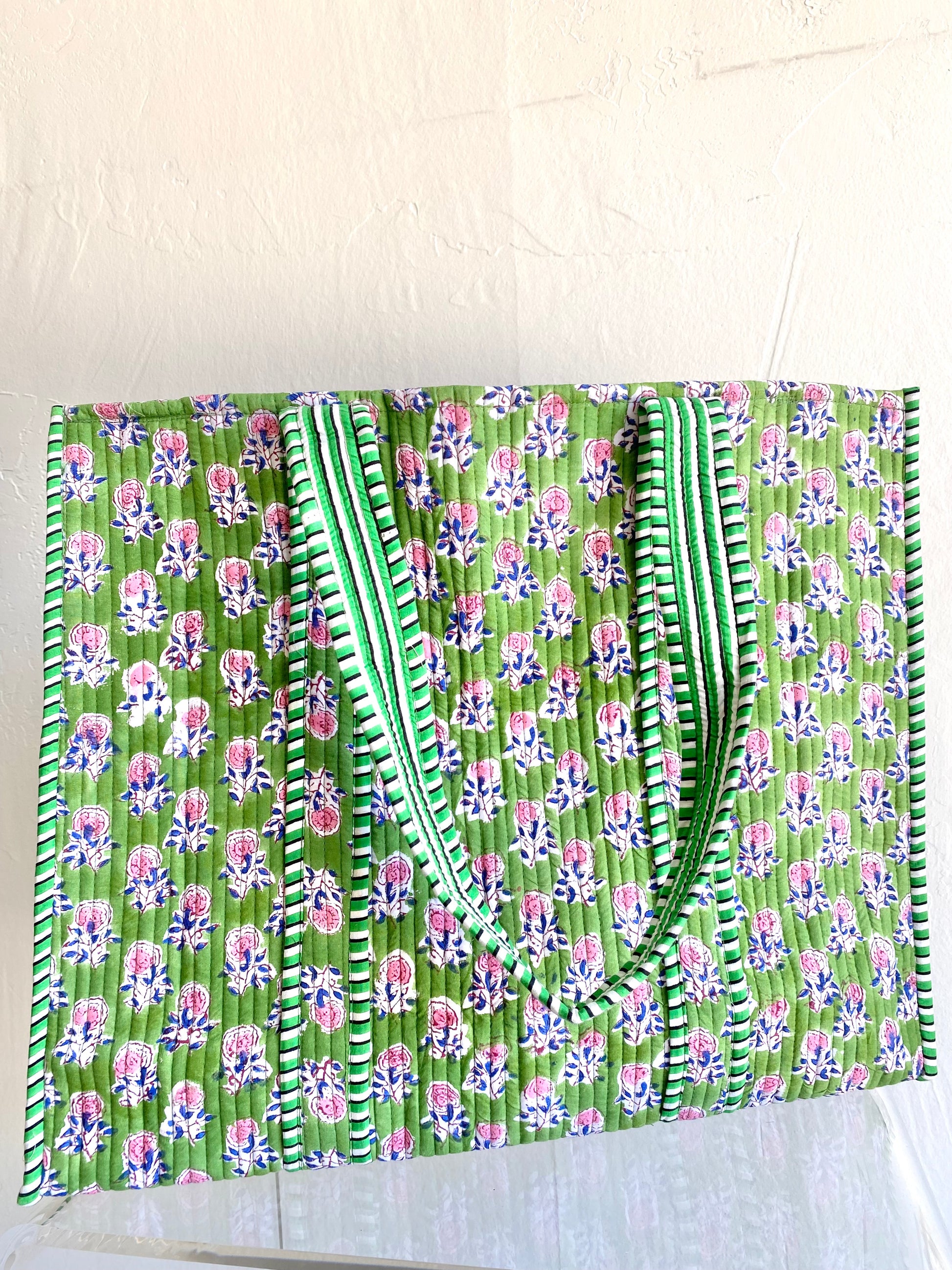 The cutest quilted tote bag for everyday use & in a fun spring green pattern!