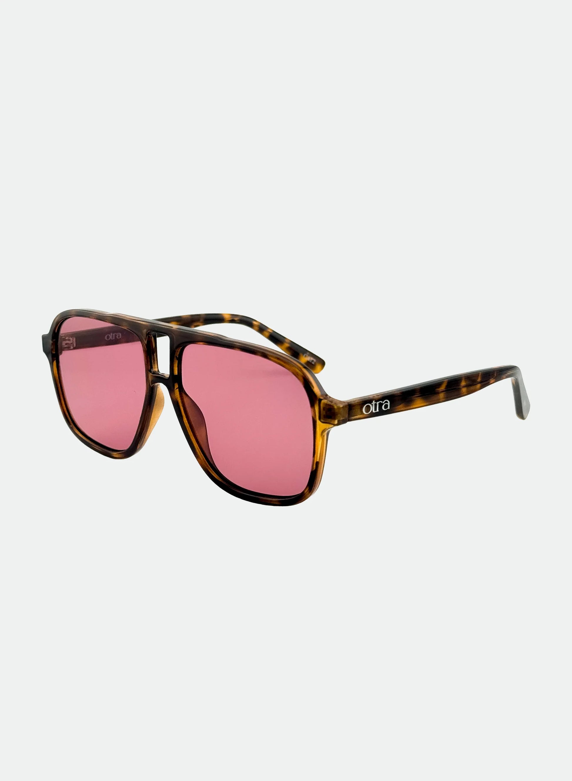 An oversized aviator silhouette in rich tortoiseshell, paired with soft pink lenses for a fresh, contemporary twist.