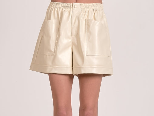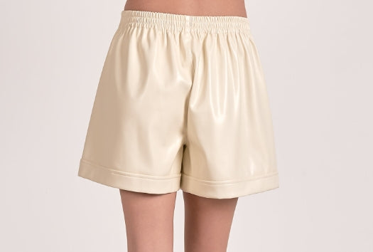 Elevate your summer wardrobe with the Rachel Cream Leather Shorts. Crafted from smooth faux leather, these shorts offer a chic, cruelty-free alternative that feels soft and looks luxurious. Featuring convenient pockets, they combine style with practicality for effortless day-to-night wear. Perfect for pairing with your favorite tops, these cream shorts bring a polished touch to any outfit while keeping comfort in mind.
