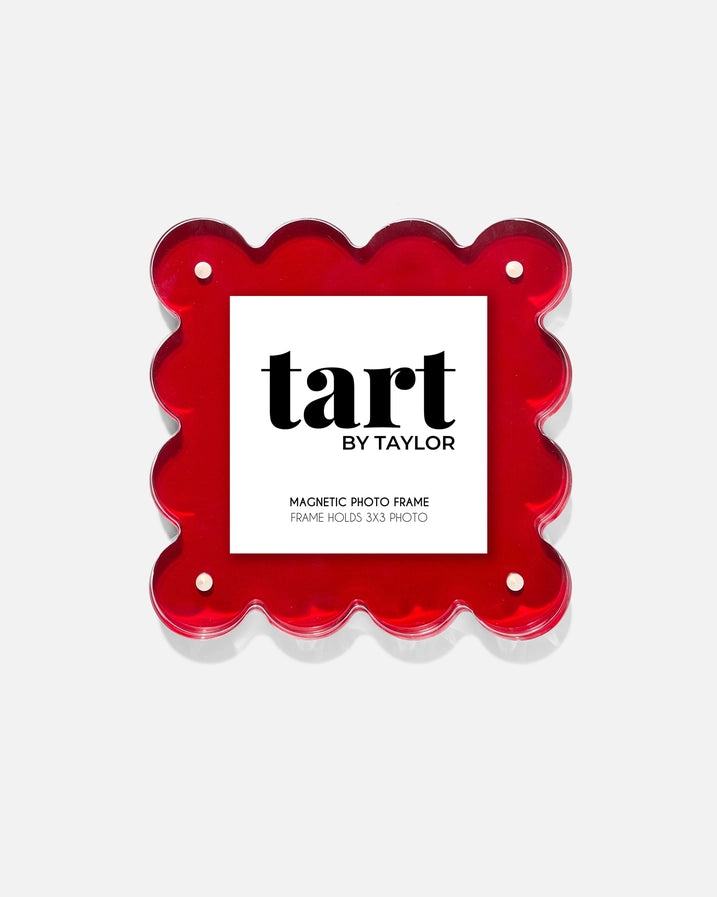 Show off your memories in a unique way with our Red Mini Acrylic Picture Frame! This acrylic scalloped frame adds a playful touch to your photos, making them stand out in any room. Great for nightstands, and desks plus they make for the perfect gift! -Suggested retail: $52-$65 -Frame Size: 5'' L x 5'' W x 1'' D -Frame holds up to a 4'' x 4'' photo - we suggest a 3'' x 3'' photo -Self-standing photo frame, can stand vertically or horizontally -Two acrylic panels simply attach together using four industrial strength magnets -Made of acrylic -Use a soft damp cloth to clean and keep inside