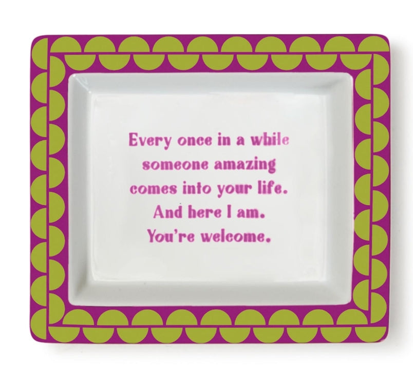 This porcelain tray is so perfect for gifting to a friend, loved one, or family member. A sassy saying on the tray is a little reminder to make you smile. Keep on your desk at work or in your home office to display alone or to keep your post-its, rubber bands and paperclips handy.