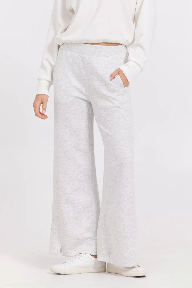 The Spring Grey Cloud Fleece Wide Leg Pant offers a relaxed yet refined silhouette with its wide-leg design, providing both comfort and effortless style. Perfect for creating a polished look with ease, these pants combine modern tailoring with a casual vibe suitable for various occasions.