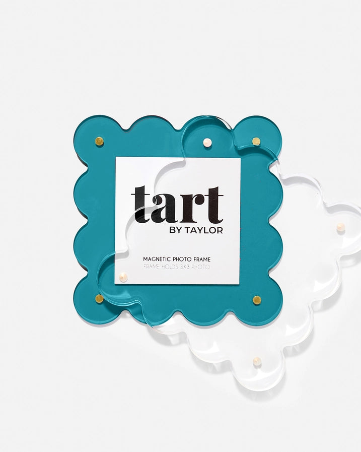 Show off your memories in a unique way with our Teal Mini Acrylic Picture Frame! This acrylic scalloped frame adds a playful touch to your photos, making them stand out in any room. Great for nightstands, and desks plus they make for the perfect gift! -Suggested retail: $52-$65 -Frame Size: 5'' L x 5'' W x 1'' D -Frame holds up to a 4'' x 4'' photo - we suggest a 3'' x 3'' photo -Self-standing photo frame, can stand vertically or horizontally -Two acrylic panels simply attach together using four industrial strength magnets -Made of acrylic -Use a soft damp cloth to clean and keep inside