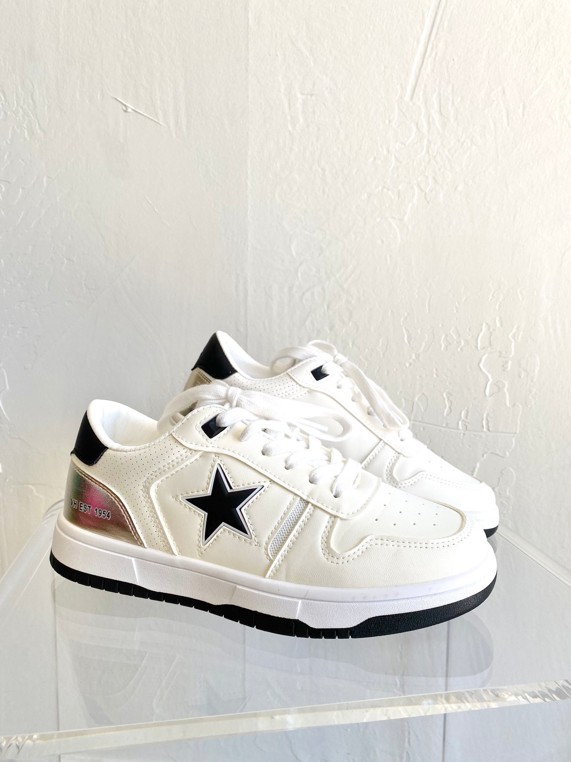 The leather upper, lace up closure, cushioned footbed, and rubber outsole all come together to create a shoe that is both stylish and comfortable. With every step, you'll feel supported and ready for whatever the day brings. These sneakers are a must-have for any fashion-forward individual looking to make a statement. Don't miss your chance to add these fresh, black and gold kicks to your wardrobe!