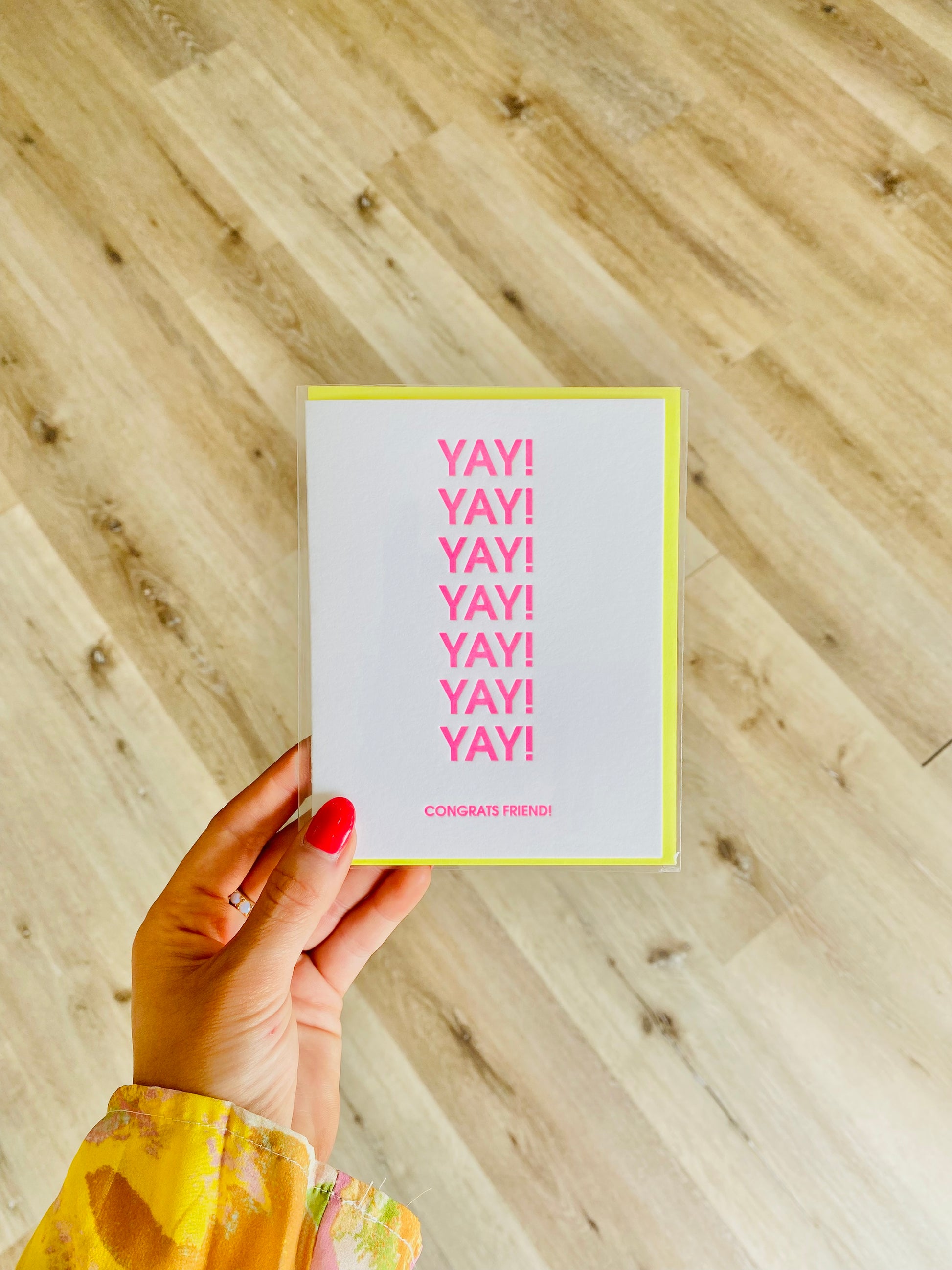 Yay! Yay! Yay! Congrats Friend! Letterpress Card